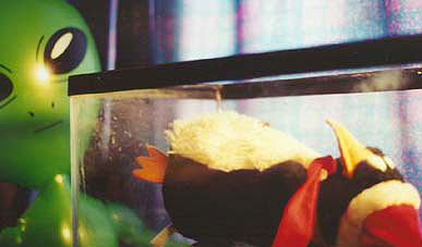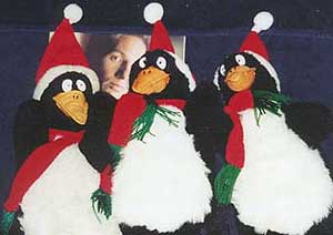 Scully looked out the window and sighed, not quite believing that her partner could possibly take the photos seriously. "Look," she said, "stuffed animals are mass produced to meet the demands of the world market, which is, of course, dominated by American consumers. And American consumerism is tied in no small way to the preferences of children. Stuffed animals are big business. Thousands of penguins just like this were manufactured, probably in China, and undoubtedly shipped in huge cargo containers right here to Chicago." "Not just like this. Look at this one." He had pulled a final photo or two from the envelope. "Does this look like your average mass production process? And this your average foreman?" |