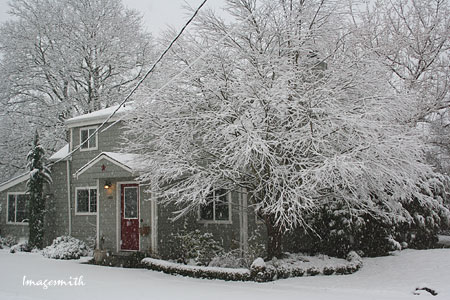 A house I especially like on a side street. The red front door is certainly cheery in this weather. |