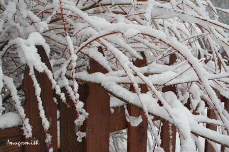 Our maple tree lying across the neighbor's backyard. Luckily it missed their shed and back porch. It wasn't even holding much snow; it simply toppled over about 10:15 in the morning. When the boys went out and looked, they said there was only a small place in the center of the trunk that was actually rooted into the ground. |