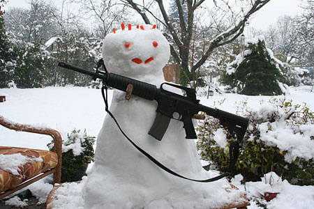 This guy's a real carrot-top. Since the Bend snow militia man was carrying an AK-47, they figured this one should have an AR-15. |