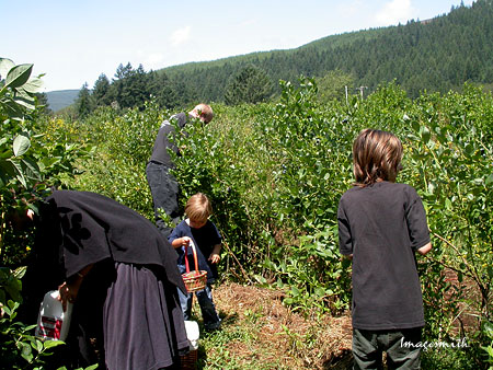 The beginning of blueberry season is a great excuse to take a trip up the beautiful McKenzie Valley. So we did. Here we arrive at the blueberry you-pick outside Leaburg. |