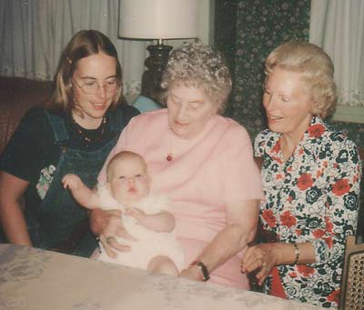 (left to right): me; Auntie Florrie (Grandma's sister) holding Annie, my