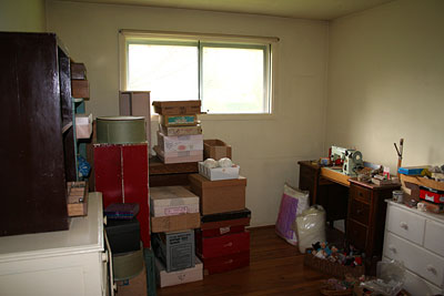 The third bedroom as I first saw it. It's not a very large room, and the single window was high up and the glass cloudy. Not the most inspiring space to work in. |