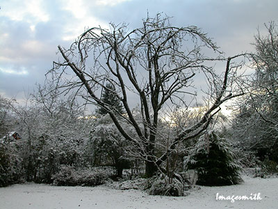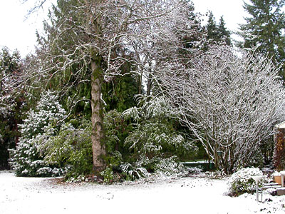 All the snow fell the night before, starting at about 8 p.m. There was only about an inch total, and by the morning it had settled some, but still, it was fun to see the yard dressed out in white. |