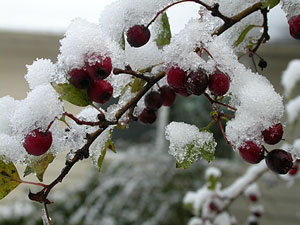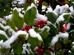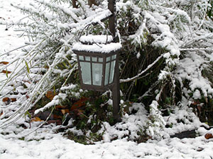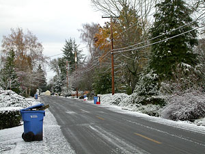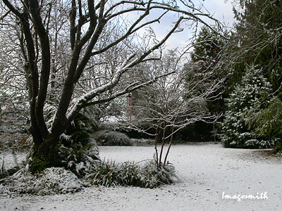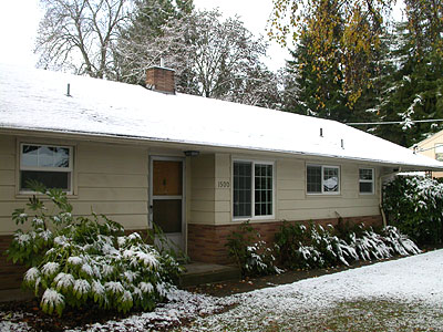 Front of the house, where the warmth of the street and related pavings made things warmer, so the snow melted away more quickly. |