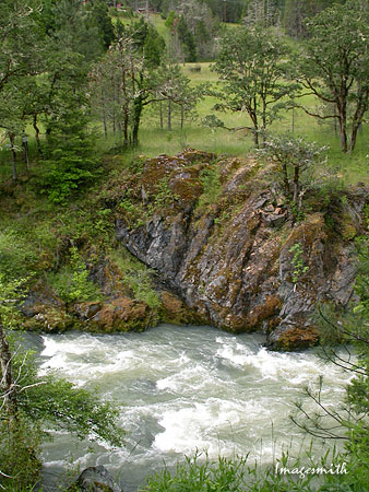 ![]() Green is the dominant color of the landscape east of Roseburg in early June... at least in 2010, with its extended wet spring. The North Umpqua River is broad and shallow here. The relatively open rolling hills of this area, along with its groves of oaks and warmer temperatures than that of many surrounding areas, remind me of the terrain around San Luis Obispo, California .