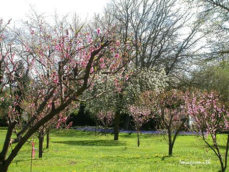 Peach orchard on Bauer Lane. At the rear is a huge tree