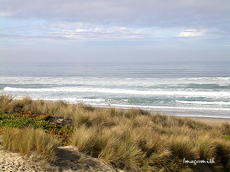 | Sea mist rises from the beach in this view looking to the southeast, toward Point Conception, well-known to mariners as 'The Graveyard of the Pacific' due to its treacherous winds and currents. During World War II, four U.S. ships ran aground in this area, with Lompoc residents responding to the calls for help in an effort to rescue survivors. | ![]() |