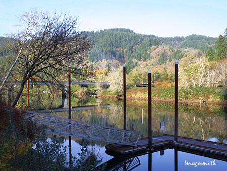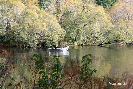 Fisherman in a typical drift boat on the Siuslaw near the Mapleton dock (above.) From Mapleton, you can catch Highway 126 and zip back to Eugene in less than an hour. |
