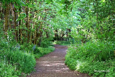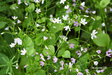 ![]() Fragile wildflowers in pinks and whites grow beside the trail. |