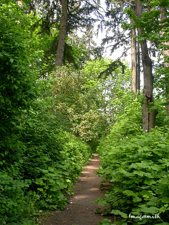 Along the perimeter path, the bare woodiness of winter has