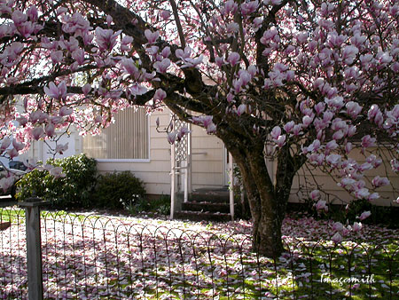 ![]() The pink confetti of a tulip tree covers the yard of this small home on Lynn Lane. |