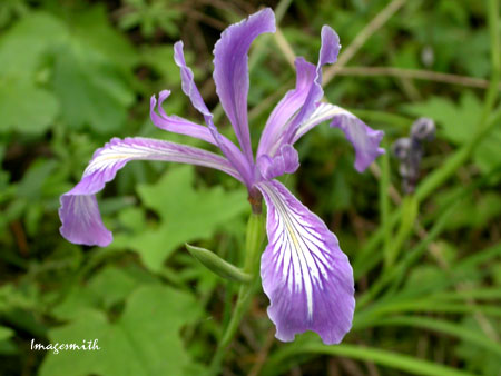 ![]() Scatterings of fragile wild Oregon iris appear at trailside.