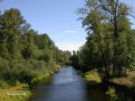 ![]() Above: The shallow Calapooia River, which divides the old and new sections of Brownsville. The Kalapooya were the native people who lived here before European settlers arrived. |