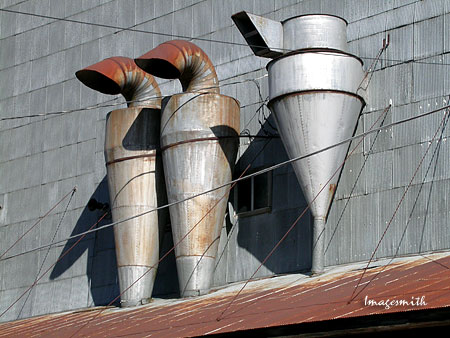 Detail on the front of the larger elevator building. I have no idea what these are for, but I'd love to know.