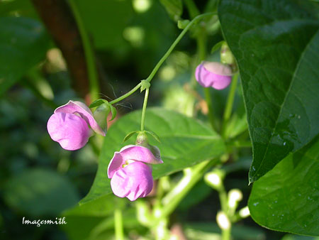 The pretty little blossoms of our pole beans.