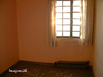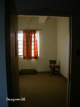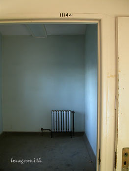 ![]() Rooms are tiny, with a window at one end and a door that locks from the outside at the other. Two electrical outlets and in some cases a radiator complete the amenities. No closets are included.