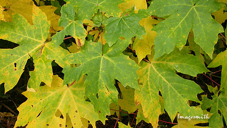 ![]() The Oregon big-leaf maple makes tall splashes of color that accent the fall forest.