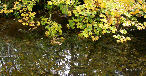 ![]() A vine maple reflected in McGowan Creek hints at the serenity of the fall forest. |