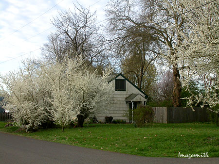 ![]() Early trees blossoming beside an old house on the corner of Cherry and Park.